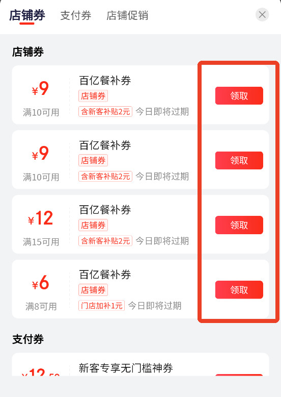 4、可以领取店铺专用的优惠券,点击右边红色的【领取】即可,要注意过期时间哦!