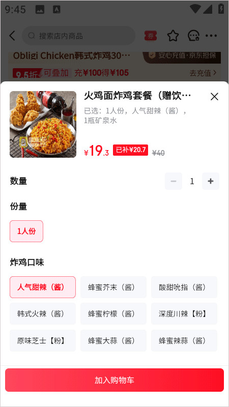 5、点击食物右下角的红色+号,可以把食物加入购物车。