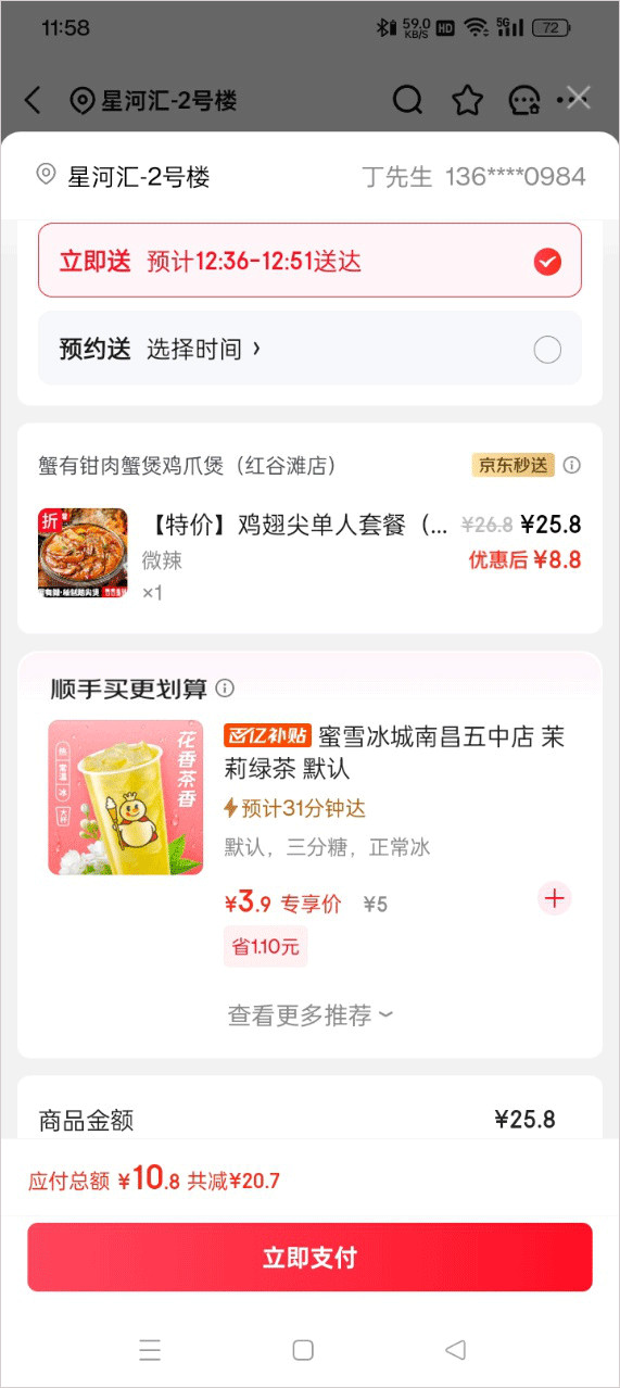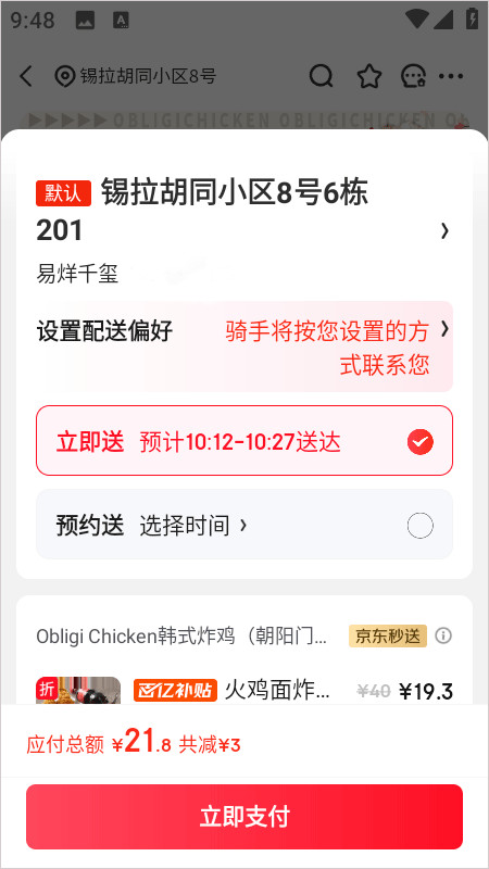 8、继续选择送达时间,可以立即送,也能选择预约送达区间。