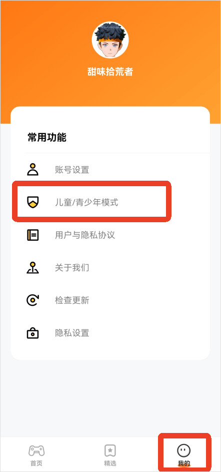 1、点击右下角【我的】,点击【常用功能】里的【儿童/青少年模式】。
