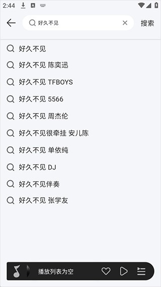 1、打开当下音乐纯净版通过搜索功能输入歌名、歌手名等进行搜索