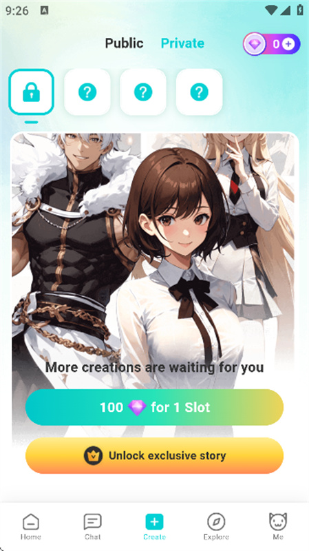 4、其次在create界面中你还可以自行太耐公共的,或则私有的AI智能体形象