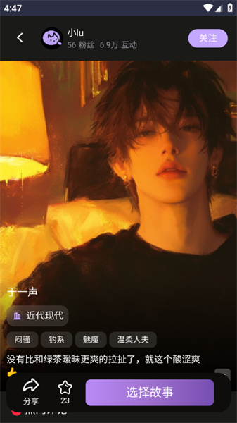 支持用户通过关键词(如“雨夜咖啡馆”“校园重逢”)触发场景,AI实时生成多线剧情,用户可干预选择推动故事发展。