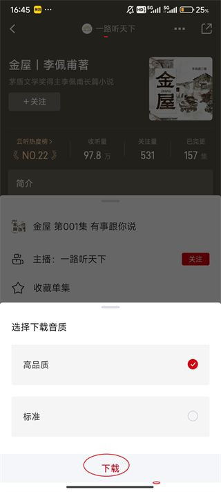 2、选择想要下载的听书,点击即可。