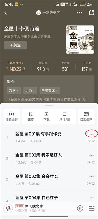 3、点击想要下载章节右侧的“三点”标识。