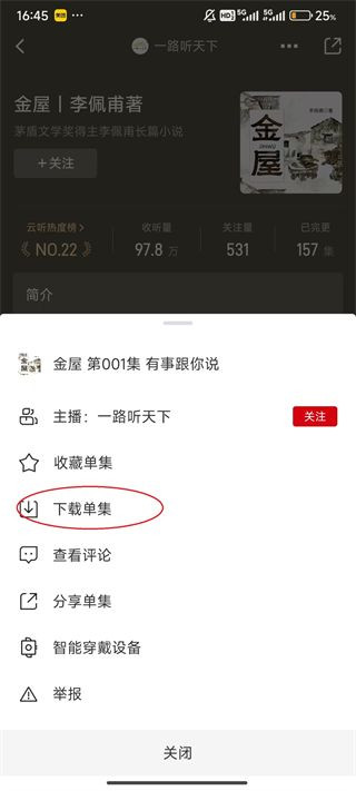 4、点击屏幕中下方的“下载单集”。
