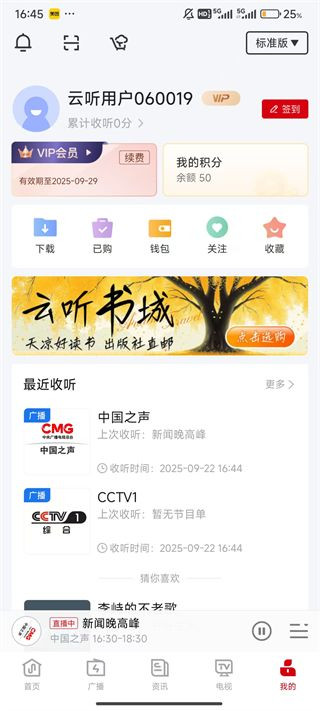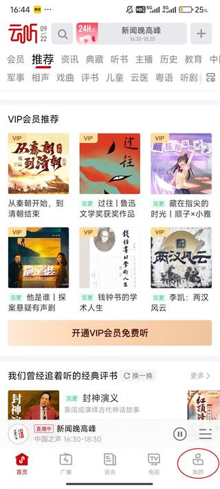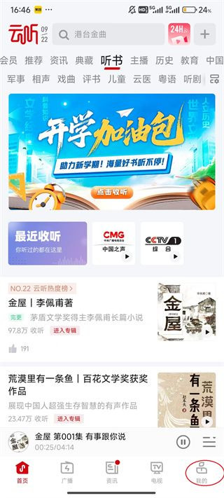1、点击云听屏幕右下角的“我的”。