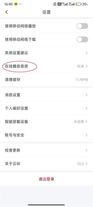 4、点击“在线播放音质”。
