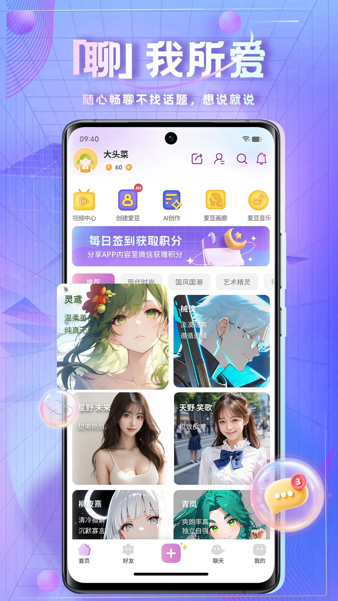 2、每日签到获积分:时空爱豆ai聊天每日登录签到,轻松积累积分。