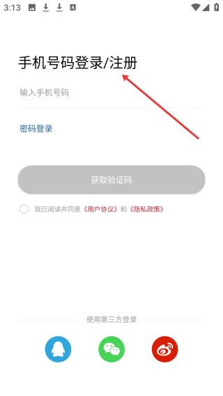 2、点击手机号登录注册方式,可获取验证码,也有密码登录选项及第三方登录入口。