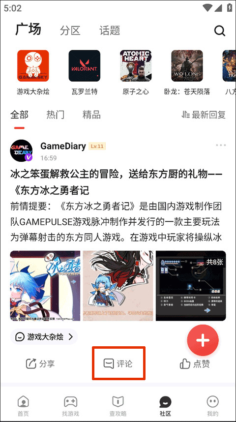 1、在游民星空盒子的社区,找到并点击“评论”按钮选项;