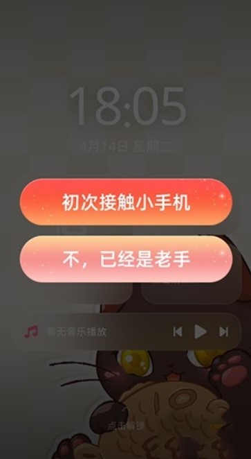 1、进入喵呜小手机首页,首先点击解锁。