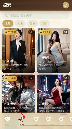 4、进入【探索】界面筛选喜欢的角色。