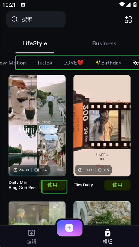 2、ShotCut App中拥有许多主题的模版,用户可以随意选择,点击使用前往添加素材。