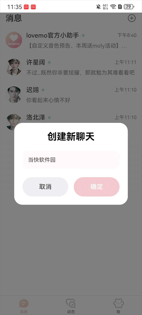 2、创建新聊天:为新人物取一个昵称,点击确定;