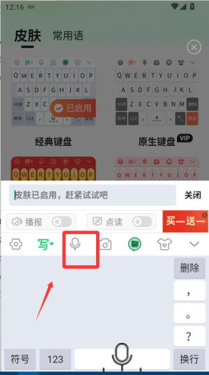 2、进入皮肤中心选择喜欢的键盘主题,可调整按键音效和字体样式实现个性化装饰。