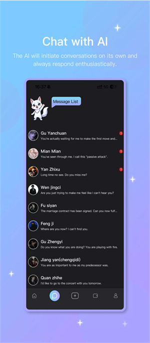 在基础聊天之外,还融入轻度互动玩法和任务内容,用户可以通过不同方式参与对话。这样既能保持新鲜感,也能让角色互动持续延伸。