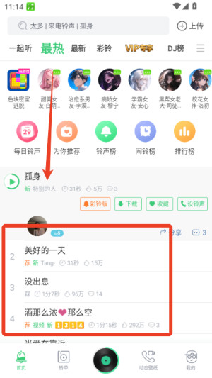 4、热门的彩铃是可以让你们自由的进行选择,百万的彩铃是可以随时随地进行切换;