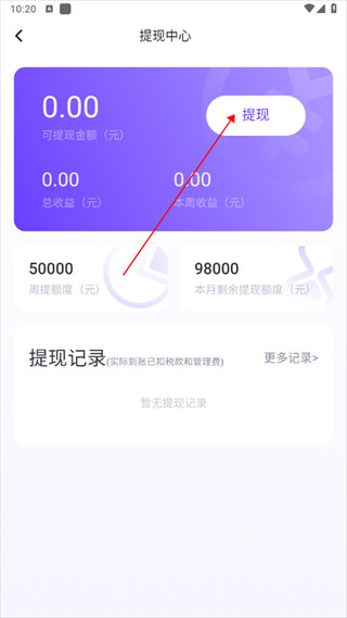 4、点击“提现”选项即可。