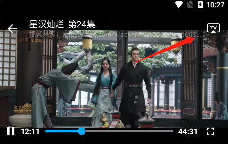 2、在视频播放界面,点击右上角【TV】按钮,在选项页面中点击【投屏】按钮;