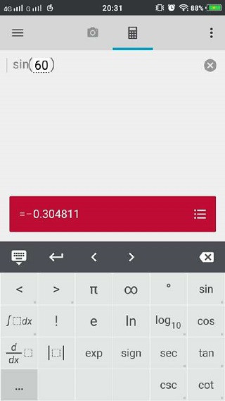 6、在照片数学计算器的计算键盘中可以看到,该APP能够实现的多种运算。