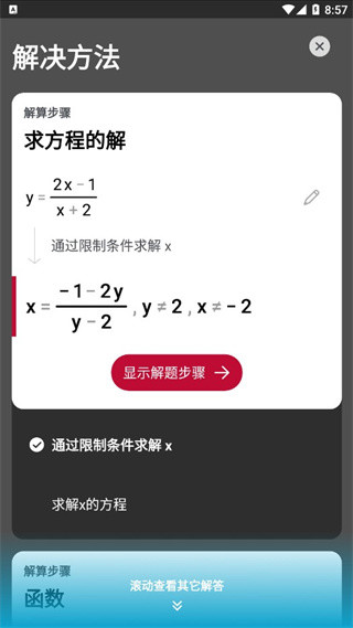 4、点击照片数学计算器的步骤按钮,可以看到完整的分步式解法。