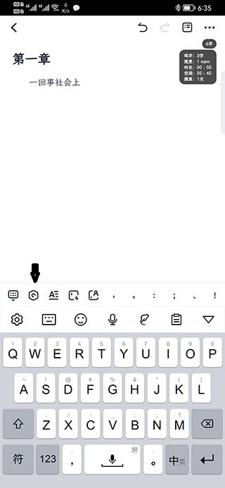 1、点击屏幕弹出输入法,在输入法上面点击第二个进入百灵创作助手设置界面。