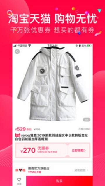 3. 领取优惠券享受更多折扣,买到自己喜欢的产品更划算,省更多钱。