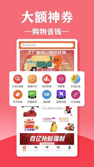 在找券购物软件中,无论你想买什么类型的商品,软件都可以满足你,让我们可以及时选择,而且界面设置非常简单,可以给我们大家带来一个非常方便的购物平台,及时购买到很多优惠商品。