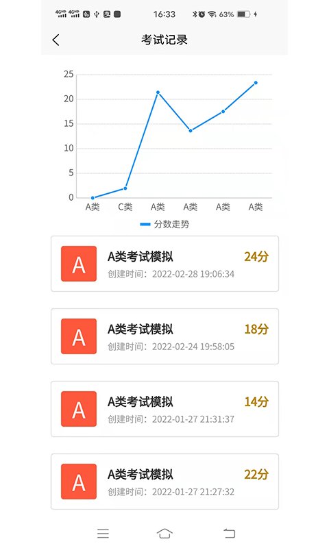 考试记录,每次的考试信息也会记录好还会提供专门的图表为大家分享成绩变化。
