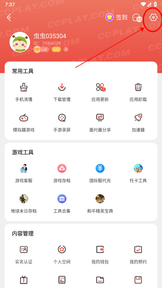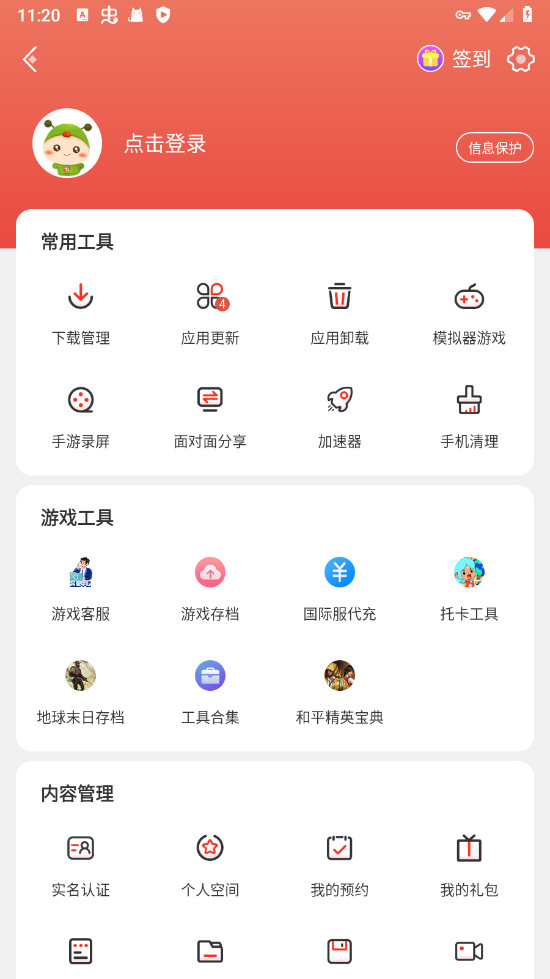 6、点开我的,有手机清理、下载管理、应用更新/卸载、加速器等。