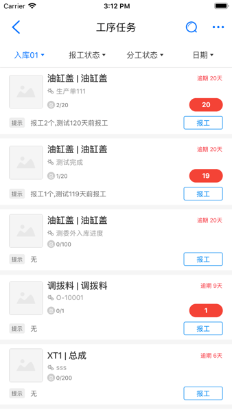 1.生产模块从生产到检验以及异常处理,都有明确的任务指标,让工作有秩序;