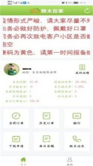做单操作:主界面显示当天待做订单,做单时保洁员按规定操作服务开始和结束按钮,对服务过程进行计时。