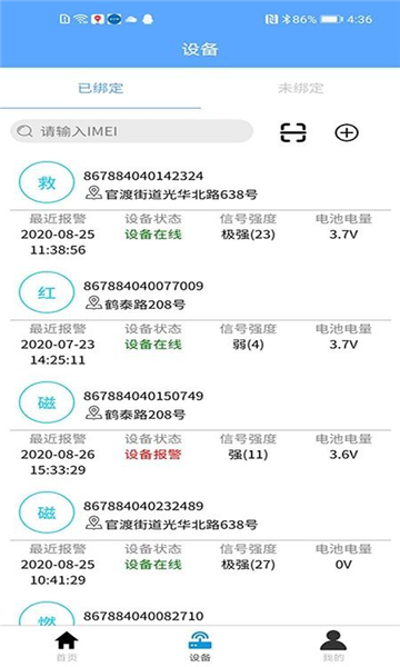 3、详细的设备信息,在这里可以查看设备的状态、报警、电池电量等;