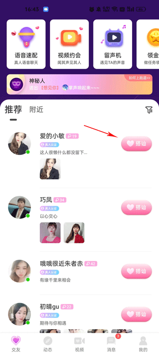 1、下载安装好本站提供的软件,来到交友板块可以和别人搭讪;