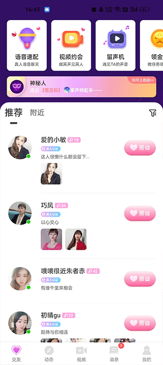 1. 真实性:专注于真人语音和视频交友模式。用户可以通过视频聊天、语音约会等方式结识新朋友,增加了约会的真实性。