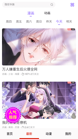 还为用户提供了每日推荐的精彩动漫,可以让你查看更多推荐的漫画,发现更多的惊喜。