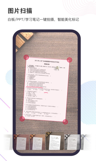 3、拍题、拍卷:自动边缘检测、拍错题、错书、错卷、大量学习资料。