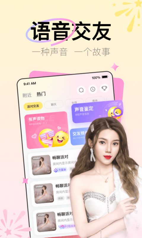 2、语言游戏大厅:加入语言游戏聊天大厅,随时随地捕捉心动的声音,帮你快速走出单身。
