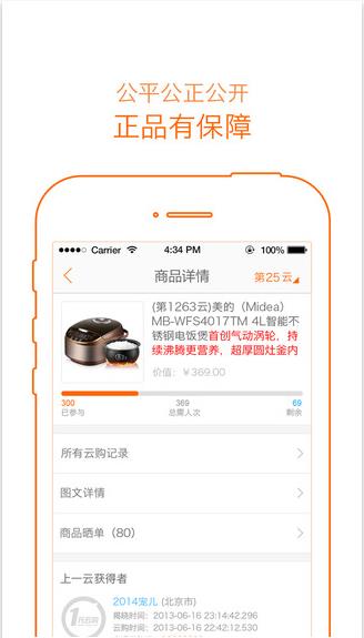 在1元云购这款软件当中,所有的用户朋友们都可以及时的去进行购物,不管你想要什么,全场仅需1元云购,而且所有的商品全部都是正品,有保障的,让我们大家可以放心购物,遇到了问题的话,也可以寻求客服的帮助,及时的解决问题,整款软件功能强大,能够为你带来更多超值好物哦。