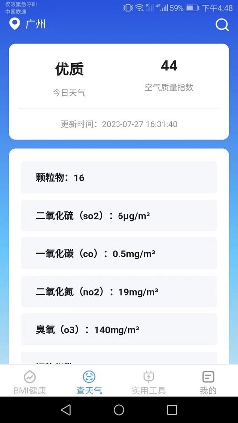 1、在本站下载打开多宝手机工具,进入主页,在主页输入身高体重就能查询BMI健康数据;