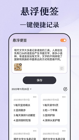 随时记录灵感和待办事项的悬浮便签,即使在切换应用时也能始终显示在屏幕上,让您的重要想法和任务永远不会被遗忘。