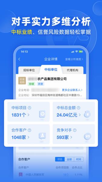 对于有需求的朋友们就可以及时的去使用这款软件,会对所有的投标项目进行线上统一管理,让我们大家可以更好的去了解,同时也会对对手实力进行多维度的分析,轻松地掌握数据。