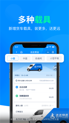 使用这款软件会感觉到非常的便捷,能够及时的去帮助我们大家送物品,带给大家一个非常快速可靠的配送服务,满足每个用户的需求,并且支持多种载具,让我们大家可以更好的去使用。