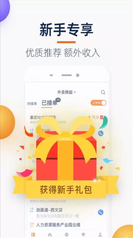 *覆盖上百个城市,拥有上万商家入驻,订单量大,接单方便。