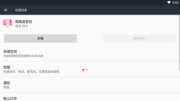 5、点击“应用程序信息”最下面的“权限”;