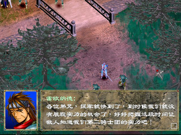 雷欧纳德一开始就走到右方栅门口,堵在那里,琥在后面攻击即可。当盗贼人数剩一人时,缇娜会出现于左下方,说完话后会走到雷欧纳德旁边。接下来不难,由缇娜帮大家回复生命力,等一般兵靠近后联手