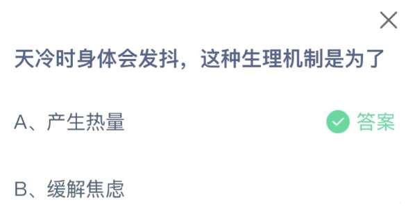 天冷时身体会发抖,这种生理机制是为了?支付宝蚂蚁庄园小课堂今日的问题更新了,很多小伙伴还在为了答案而着急吗。接下来魔酷小编为大家带来2023年11月15日支付宝蚂蚁庄园今日最新问题答案介绍,不知道的小伙伴快来看看吧。