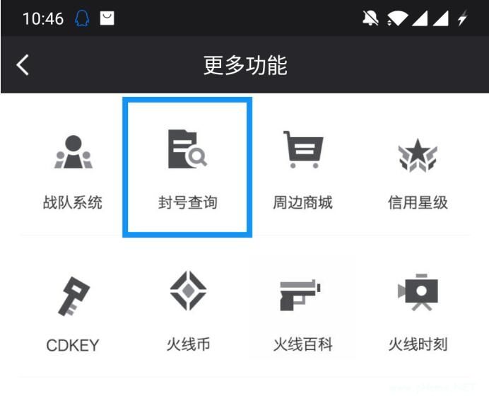 1、在首页上点进更多功能可以看到封号查询的功能。