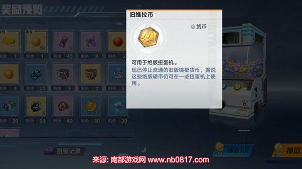 2.0版本新增货币: 旧维拉币是2.0版本新增的货币,在新区域主城镜城开放六种扭蛋机。